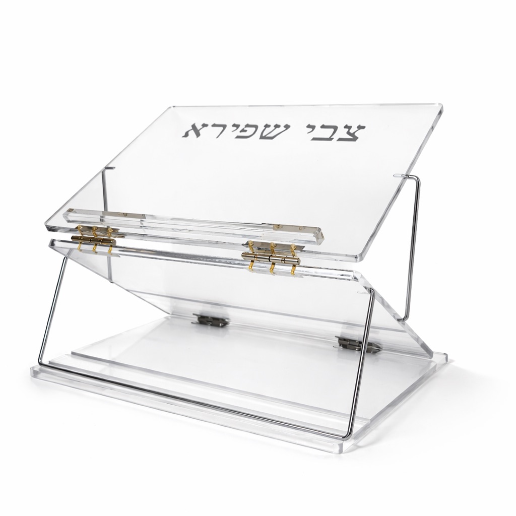 Made from clear, high-quality acrylic with a sturdy metal support frame, it holds seforim at a comfortable angle while keeping pages securely in place.